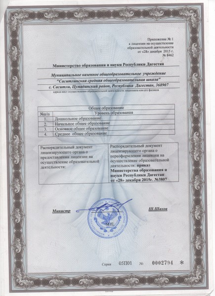 Адрес местонахождения образовательной организации* 368906 р.Дагестан, Цумадинский район, с. Саситли