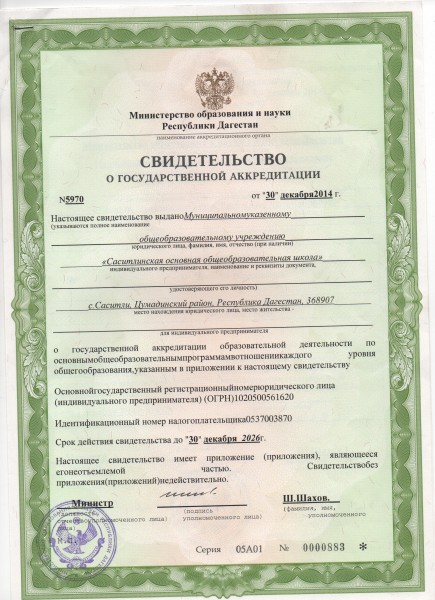 Свидетельство о государственной аккредитации